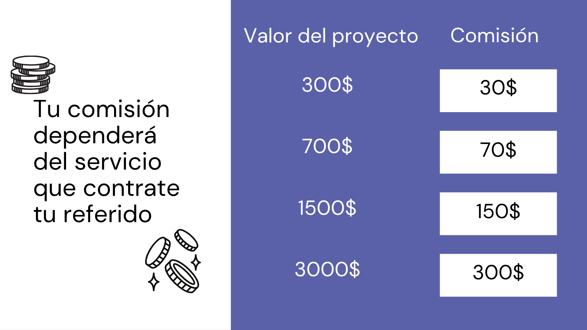 Cobra un porcentaje de cada servicio que contraten nuevos clientes. Rápido y fácil.
